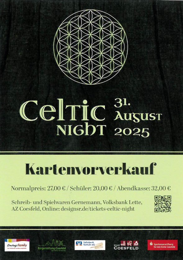 Vorankündigung zum großen Open-Air Konzert "Celtic-Night" am 31. August 2025 am Ernstings family Sportpark: